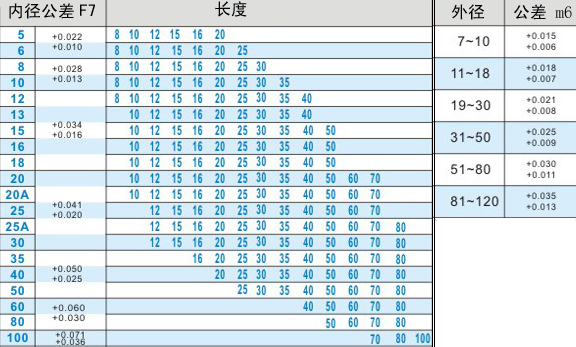 高负载型:d8, 高精度:f8, 轻负载:e7, 高精度:g6